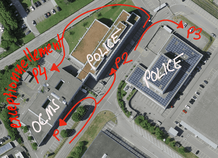 Vous pouvez alors utiliser les parkings visiteurs de la Police (P2 et P3 sur la photo)